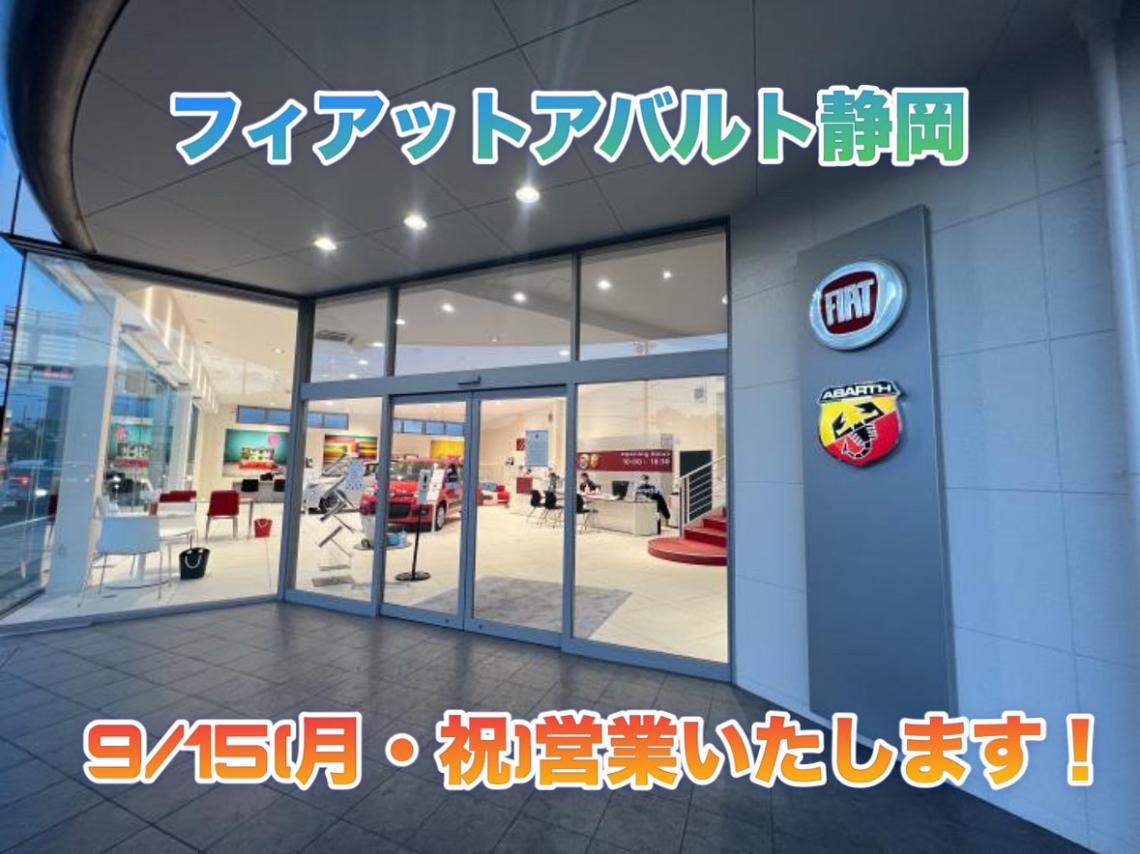 3連休いかがお過ごしでしょうか!?明日はあっという間に最終日ですが、、、フィアットアバルト静岡9/15(月・祝)臨時営業いたします!!!※ショールームのみの営業...
